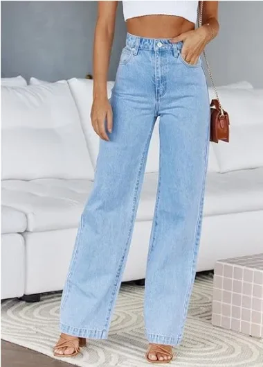 Bleached Washed Straight Pants Women Denim Ankle Length Jeans Zipper Fly High Waist Jean Pocket Loose 2025 Summer Basics